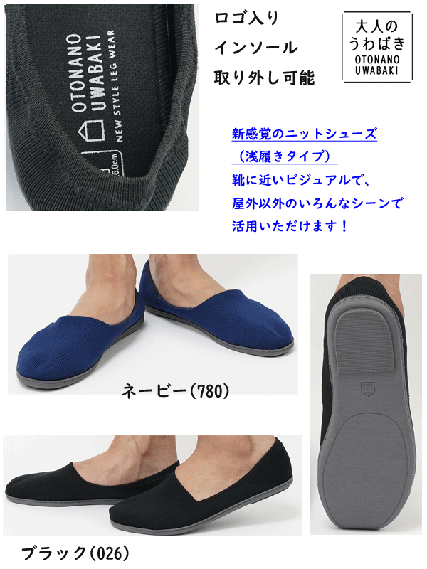 【大人のうわばき OTONANO UWABAKI】 新感覚のニットシューズ (浅履きタイプ) 靴に近いビジュアルで、屋外以外のいろんなシーンで活用いただけます! ニット製なので、通気性抜群! 足底は合成ゴムで仕上げているので、滑りにくく、水にも強い。